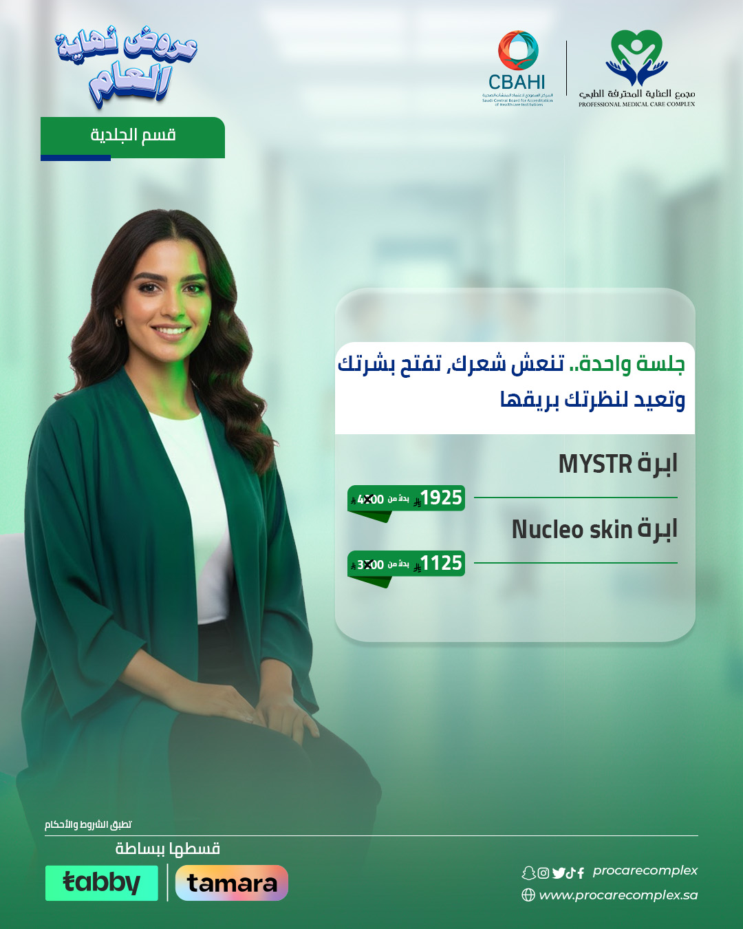 لا تفوتوا هذه الفرصة لتحسين مظهر بشرتكم بأسعار مغرية والاستفادة من خبرة أطباء الجلدية لدينا. اضمنوا لنفسكم بشرة نضرة وشابة اليوم.