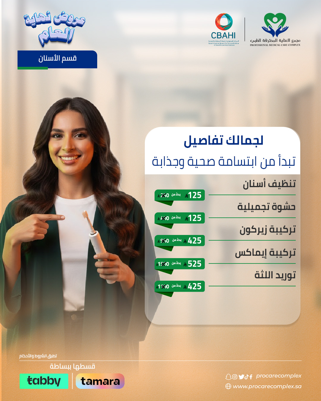 استفيدوا من هذا العرض المميز لتحقيق الابتسامة المثالية التي تستحقونها، مع مجمع العناية المحترفة الطبي جازان وخبرائنا في مجال العناية بالأسنان.
