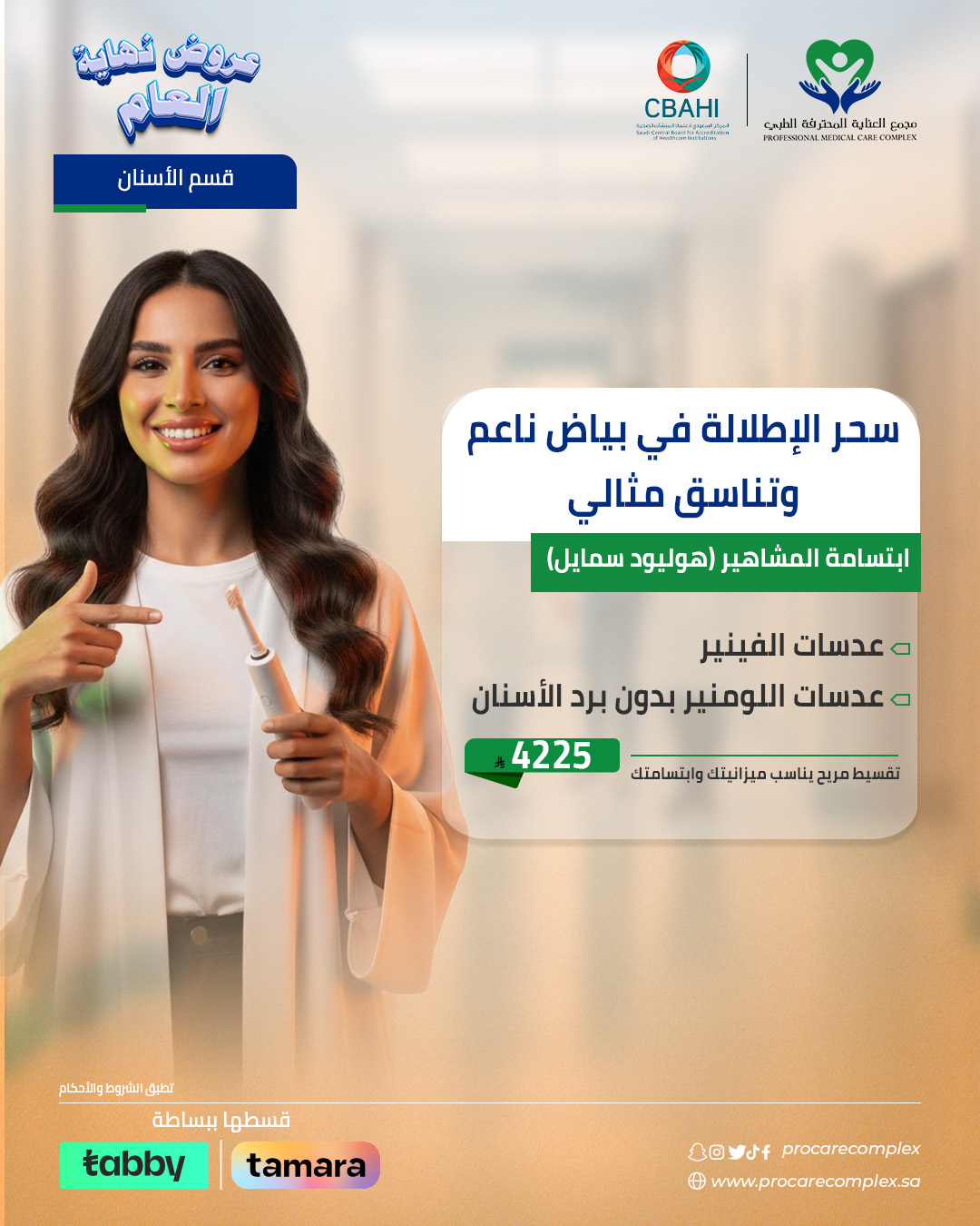 عرض ابتسامة المشاهير (هوليود سمايل) من مجمع العناية المحترفة الطبي في جازان